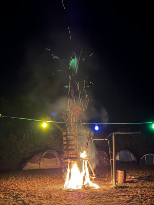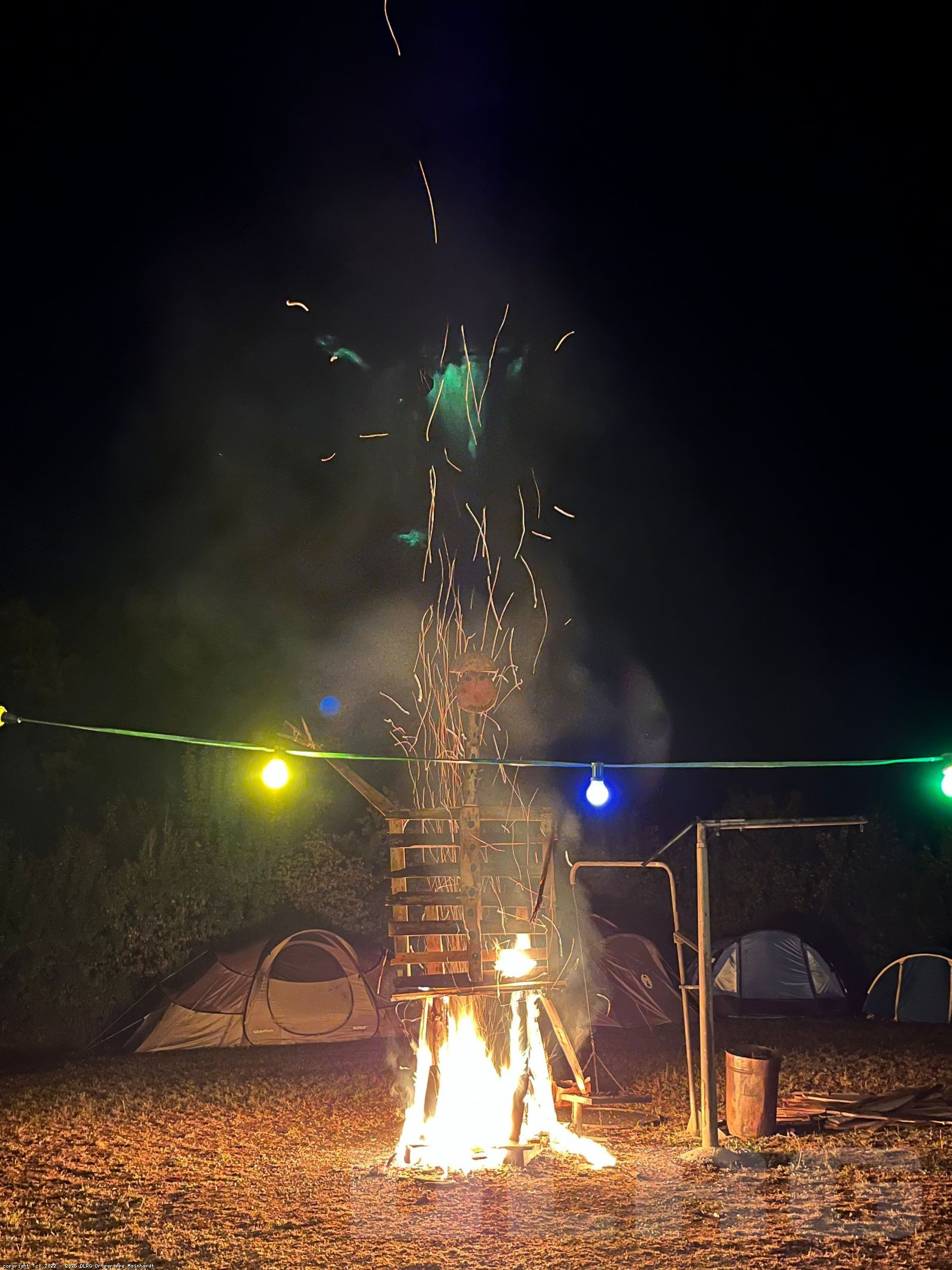 Den Abschlussabend feierten wir mit Tanz und Musik und bedankten uns bei dem Wächter des Zeltlagers „Olaf“ für die schöne Woche. Olaf ist eine selbst gebaute Figur, die nach einer schönen Woche traditionell im Lagerfeuer verbrannt wird.